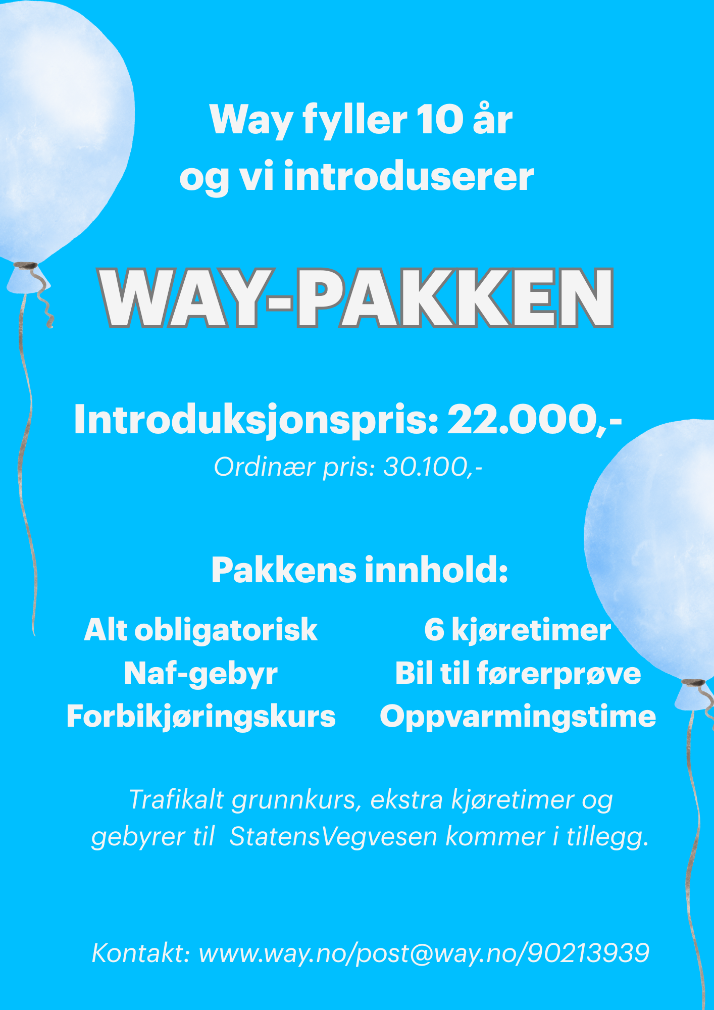 «Jeg gjennomgikk hele opplæringen min hos Way, og angrer ikke et sekund på det. Hadde flere lærere, og har bare gode opplevelser med hver eneste. Trygt og profesjonelt!»